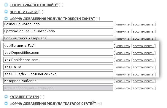 Главная » Новости сайта » Настройки модуля » дополнительное поле