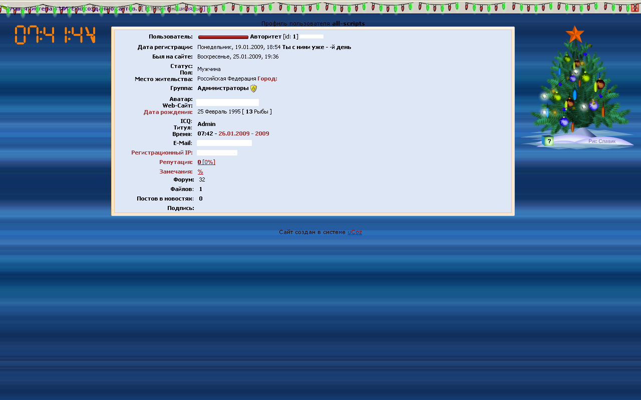 Этот код вставляем в персональную страниЧку пользователя предварительно удалив оттуда все!!