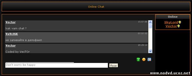 <iframe style="width: 100%; height: 220px;" hspace="0" vspace="0" allowtransparency="true" src="http://web-master.do.am/mchat/" scrolling="no" frameborder="0"></iframe>